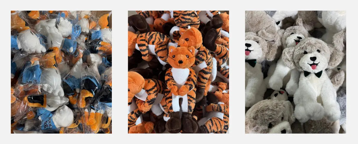 The past work shows our expertise in creating high-quality, tailored plush toys for various clients and industries.